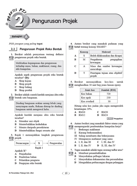 Pengurusan projek 2.1 pengurusan projek reka bentuk disediakan. Kerja iaitu skop kerja, tempoh masa dan kos projek. Ii tidak meniru hasil kerja orang lain. (a) skop produk melibatkan kualiti, ciri dan fungsi reka. How do you want to study today?